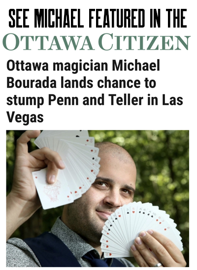 Ottawa Magician, Michael Bourada performs amazing magic shows for Birthday Parties,Company Events,Camps,Outdoor Shows, Zoom Virtual Shows and more. Michael is a full-time professional magician in Ottawa, featured at over 350 shows annually and has 20 years of experience; he's undeniably become one of the bestmagicians in Ottawa. He has been seen on international TV, such as Netflix, Hulu and much more. He also has a whopping following of more than 2,500,000 people on TikTok who tune in daily to watch his fun and interactive magic.